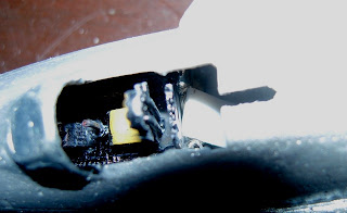塞进4粒螺丝,滴了三滴502进去,不放心,又加一小块胶板进去档一下。