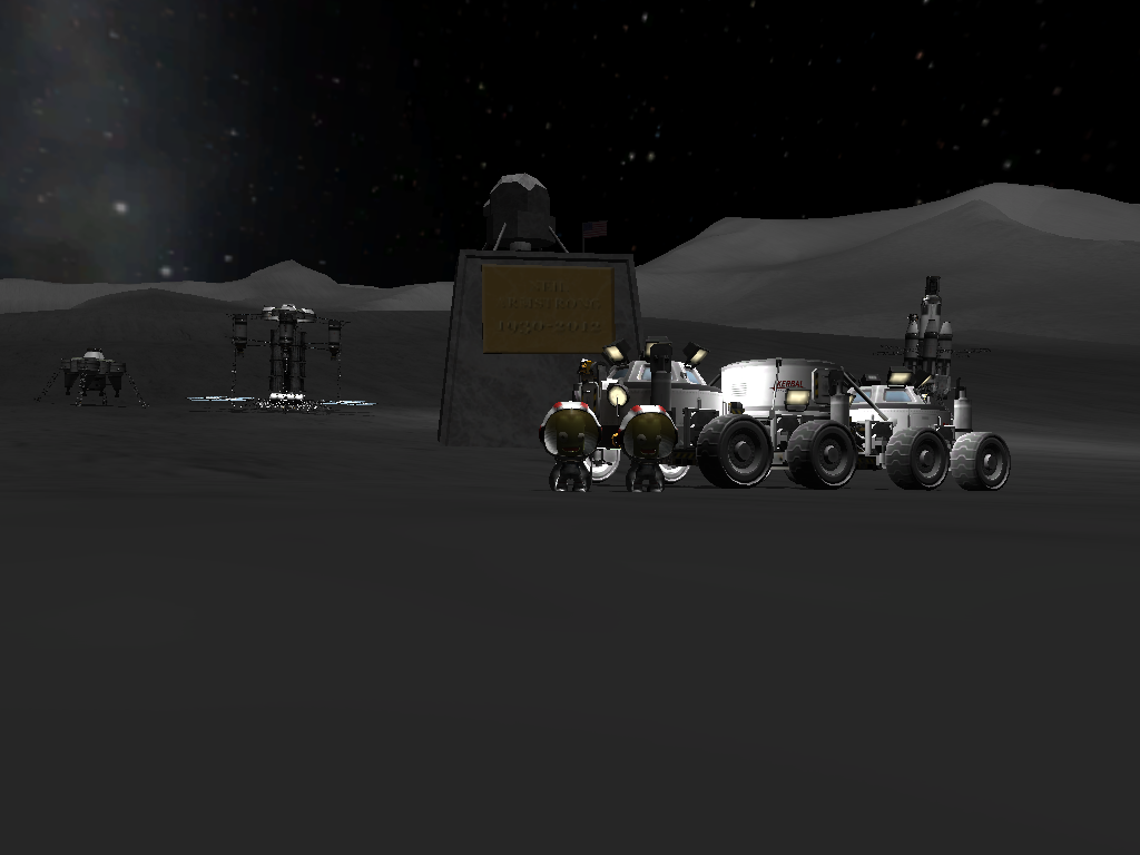 下船来一个人拍照留念插个旗子,然后就收工。登陆舱上轨后发现出了一个大乌龙,登陆舱上竟然没有装对接口!于是登陆舱里两个小绿人只能EVA回大船……