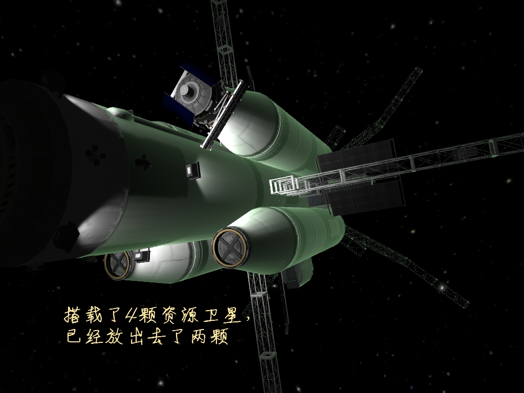 匆匆搭建了两艘这样的能载客18人大船,和一个同样能载客18人的重型登陆舱(总共能装54个人)空空荡荡地装了四个小绿人从绕kerbin轨道出发了(两个大船里各一个,登陆舱里两个)。